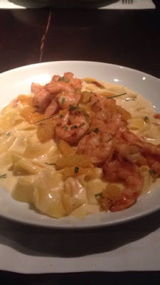 | camarões salteados com páprica picante, papardelle italiano al dente, com molho cítrico com toques de laranja e gengibre |