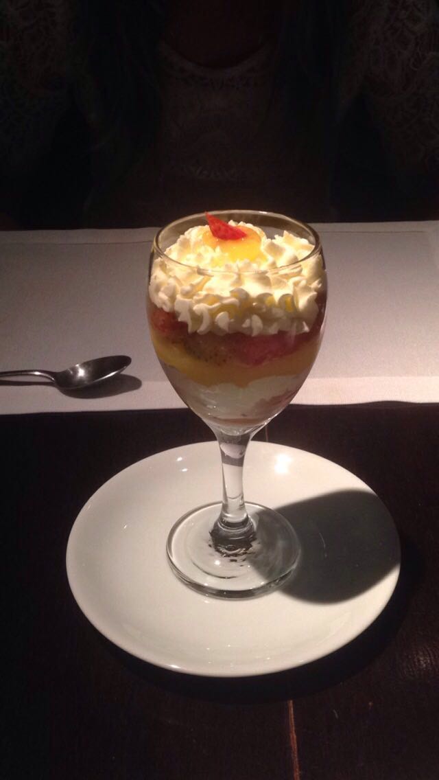 | sobremesa de morango intercalado com creme de ovos e nata (recomendadíssimo) |