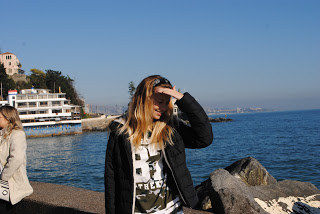 A 1 hora e meia de carro de Santiago, fica as praias Vina Del Mar e Valparaiso. Primeiro fomos conhecer Vina Del Mar, conhecer a praia, mas o dia estava muito frio entao so olhamos mesmo. Fomos em uma rua chamada Av Peru, para olhar o mar, tiramos muitas fotos la! E muito bonita.