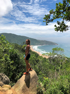 Escolhemos a que sai do pântano do sul. Saímos bem cedo, para pegar a praia de manhã. Começamos a trilha por volta de umas 8 horas. Quando chegamos lá, a praia estava bem tranquila, quase deserta. O movimento começa por volta do 12h.
