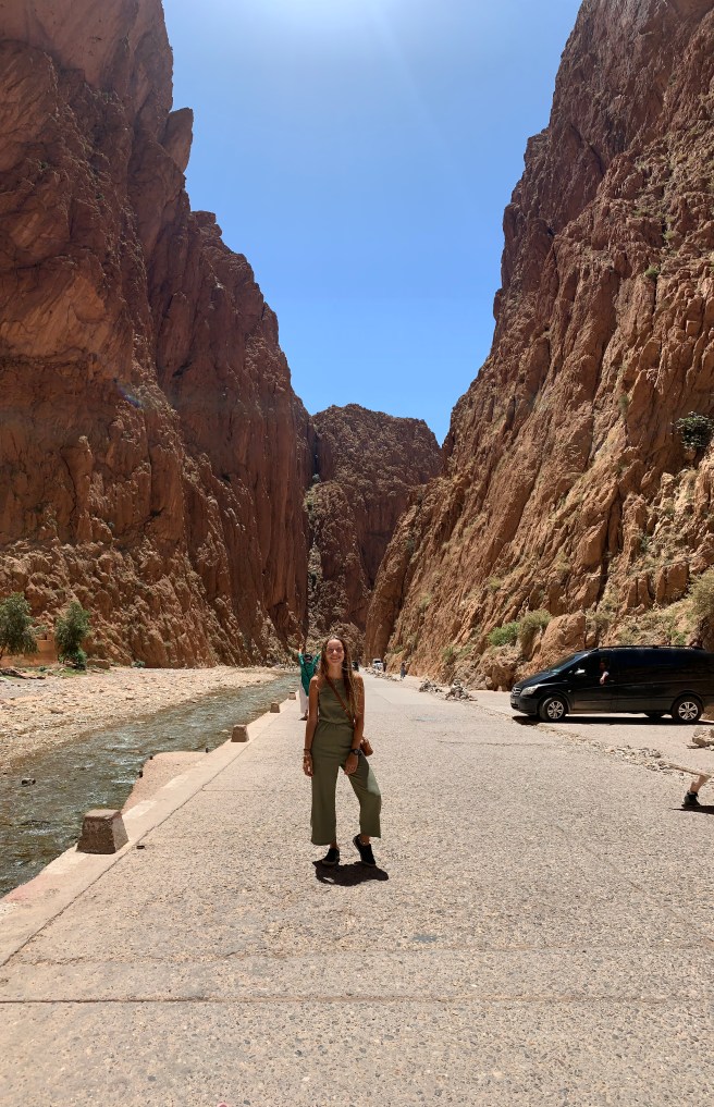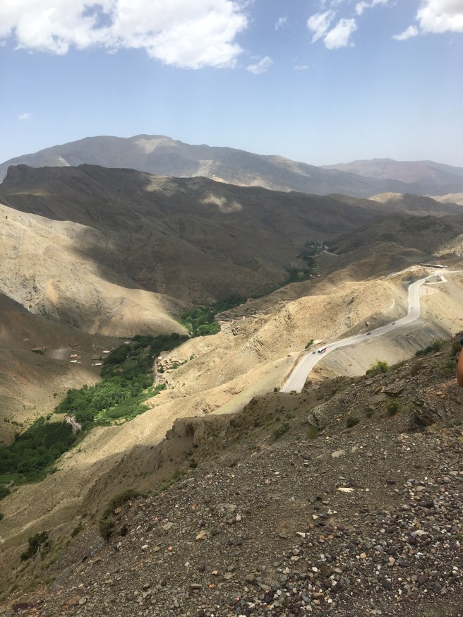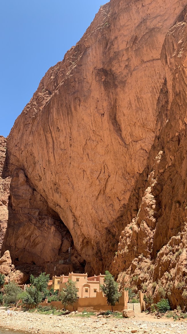 Fizemos uma parada no mirante da cidade de Boumalne e de Tougha El Oulia. Paramos também na Gargantas de Todgha, que é um paredão enorme de pedras, muito famoso pelos escaladores.