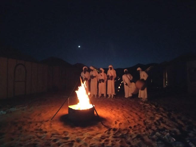 Depois do jantar, o grupo se reuniu para apreciar a noite e as estrelas. O céu estava maravilhoso, era lua nova, então deu pra ver muitas estrelas. Nosso guia, o Sayd, explicou algumas estrelas e nos mostrou algumas constelações, inclusive a do signo de escorpião e libra. Foi lindo demais.