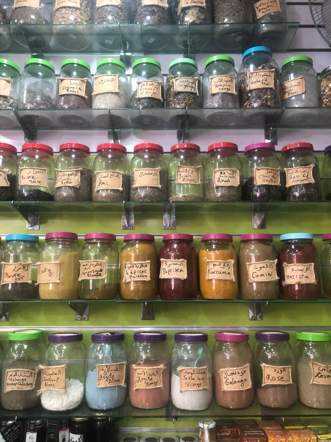Esse dia foi um “dia livre” em Marrakesh. Conhecemos tudo e paramos em lojinhas de souvenirs. A melhor que encontramos foi essa da foto a seguir perto do hotel. Tinha de tudo, desde suvenir a óleos e temperos.