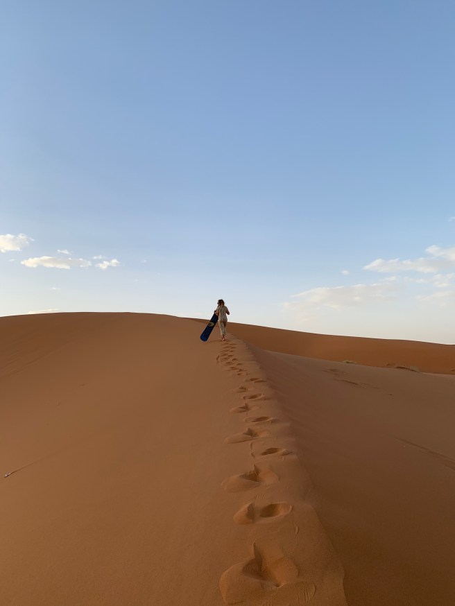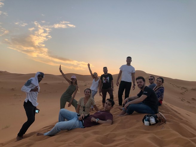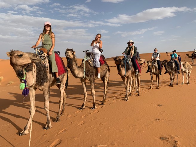 Atravessamos o deserto nos dromedários, mas se você não gosta desse tipo de turismo animal, pode ir a pé ou de 4×4.