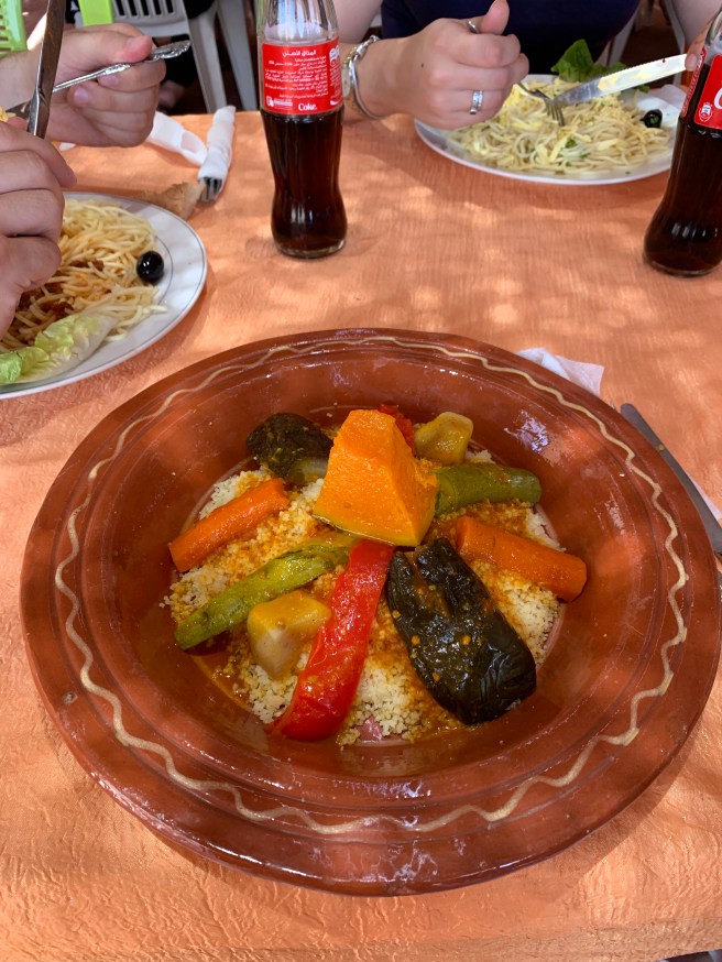 Foi aí também, nossa parada para o almoço, no O Asis. Comemos pratos típicos como Tajine e Cuscuz.
