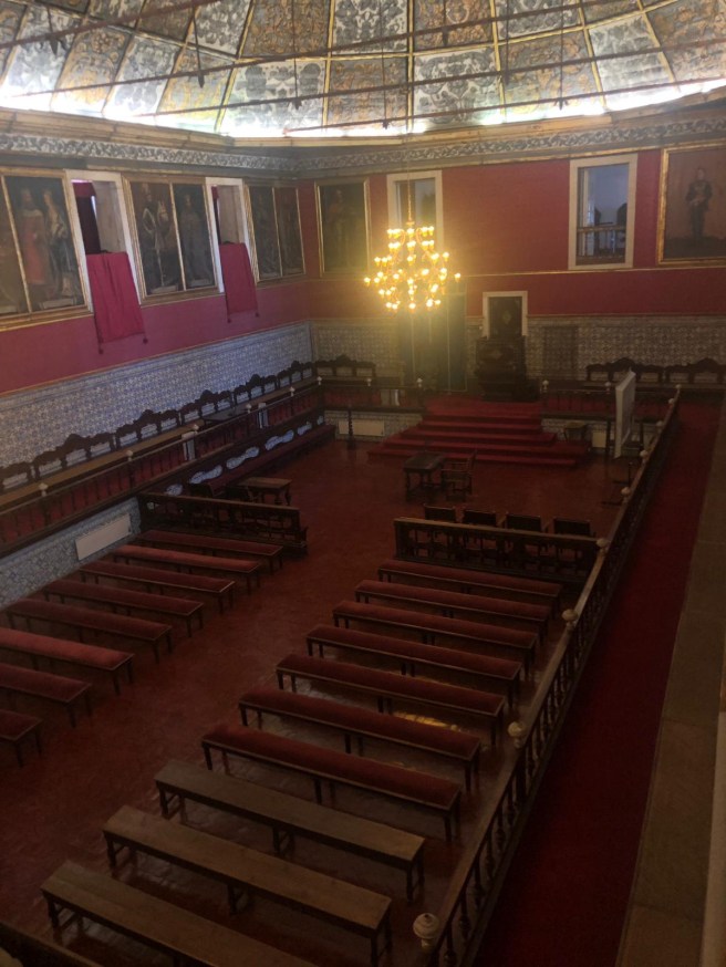 Nosso tour pela faculdade foi cerca de 1 hora e meia, subimos na torre da faculdade, visitamos a capela de São Miguel, biblioteca joanina, sala dos capelos e o museu de ciências.