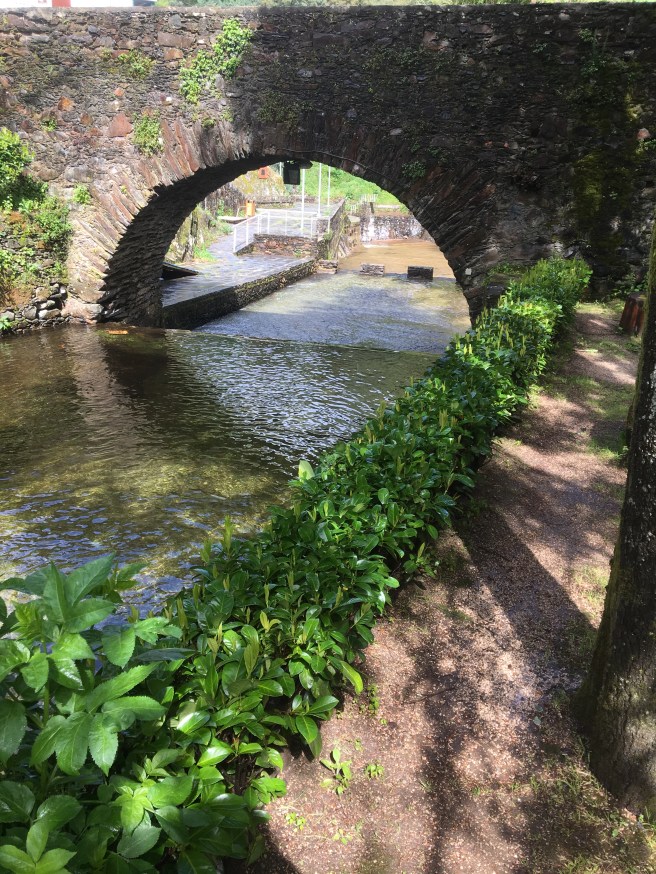 Logo no início da caminhada, passamos por esse cenário com pontes, rios e uma cachoeira: