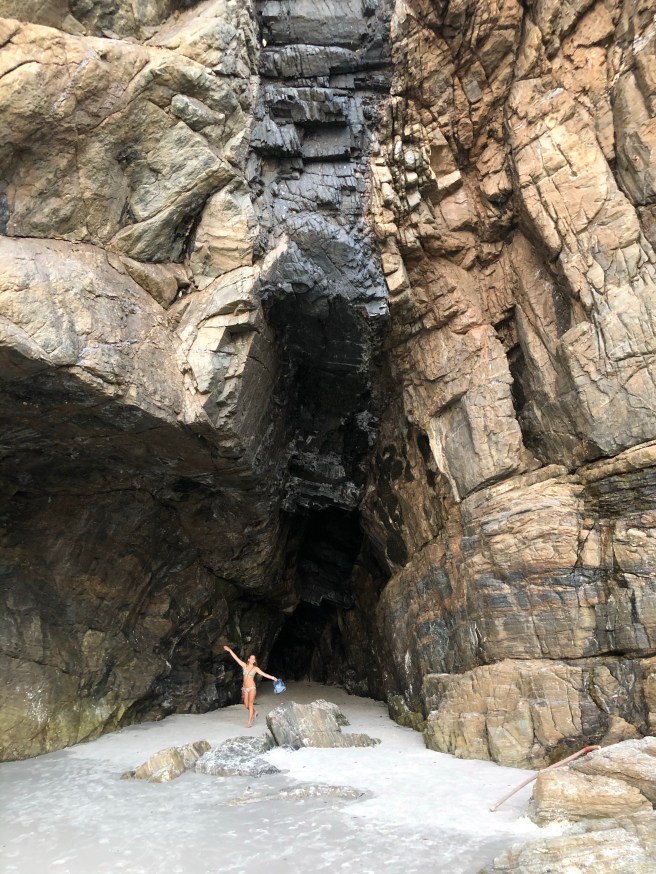 O que fazer? No primeiro dia, ficamos na praia Mar de Fora e conheci a Gruta da Encantada. Para chegar, há uma trilha fácil, bem perto da Praia da Encantada, aproximadamente 10 minutos.