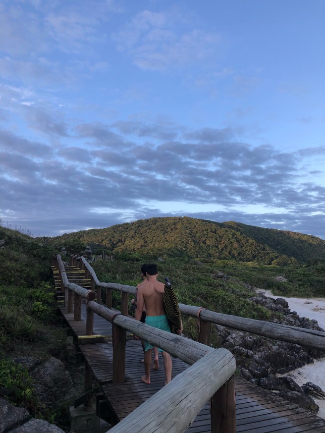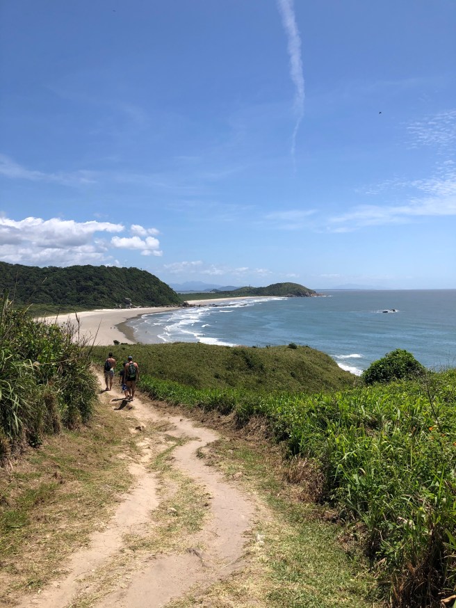 No dia seguinte, fizemos a trilha que levava até a Praia Nova Brasília. Já saímos com todas as nossas coisas (eram só mochilas) para no final do dia pegar o barco em Nova Brasília para voltar a Pontal do Sul.