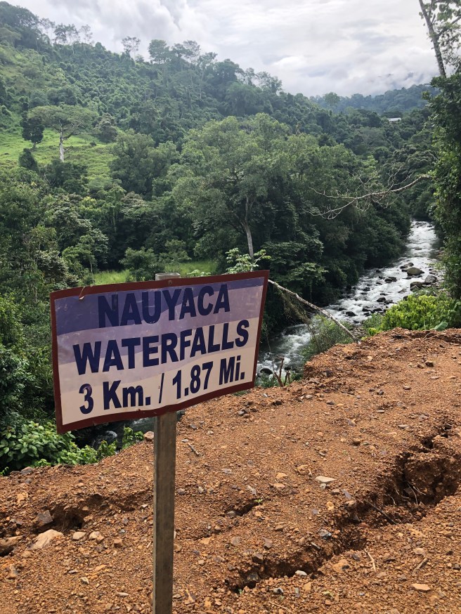 As Cataratas Nauyaca está localizado a 12 km de Dominical, mais ou menos uns 20 minutos. Se você colocar Nauyaca Waterfalls no waze você vai achar o local. Fica na estrada 243. Nessa estrada, você vai achar a lojinha que vende os tickets, um office bem na beira da estrada. O ticket custa 8 dolares por pessoa.