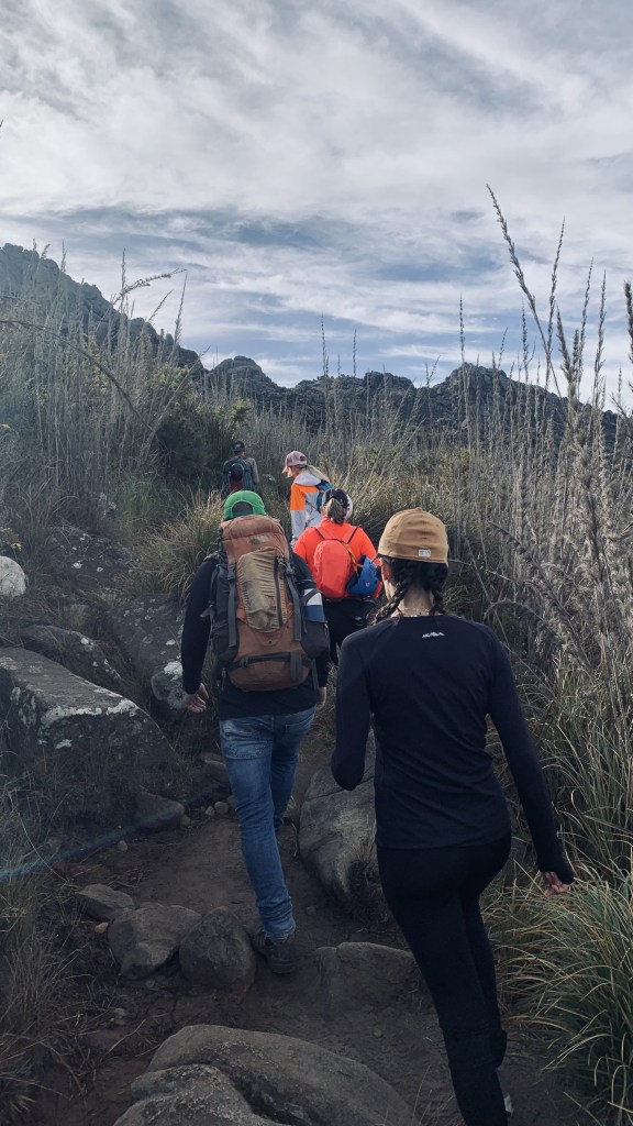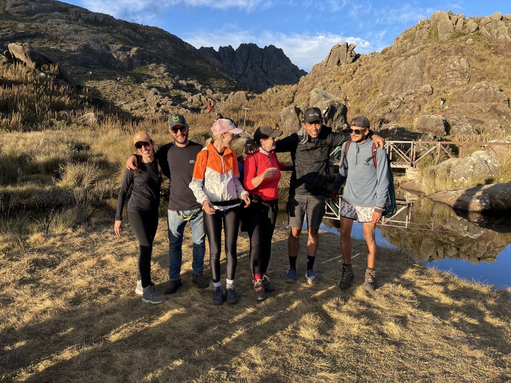 O dia: Fizemos a trilha no nosso terceiro dia de parque. No dia anterior tínhamos feito a travessia Couto-Prateleiras (base). Acordamos umas 6h da manhã. Preparamos lanches e nos encontramos com o guias.