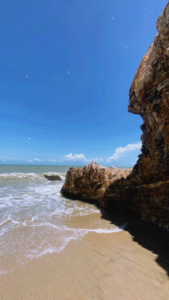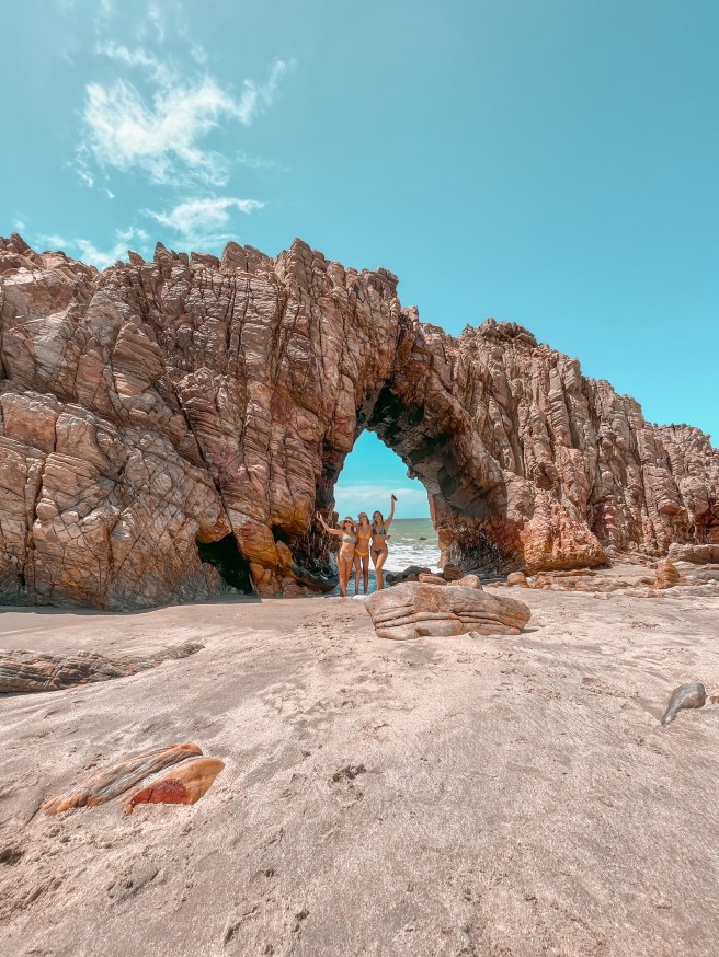 Um lugar bem famoso é a Pedra Furada. Para chegar há dois jeitos: pela praia e pela trilha no morro. Na ida, fomos pela praia e, na volta, pelo morro que é o caminho mais curto. Pela praia só é possível quando a maré está baixa. São uns 2,6 km que duram 1 hora.