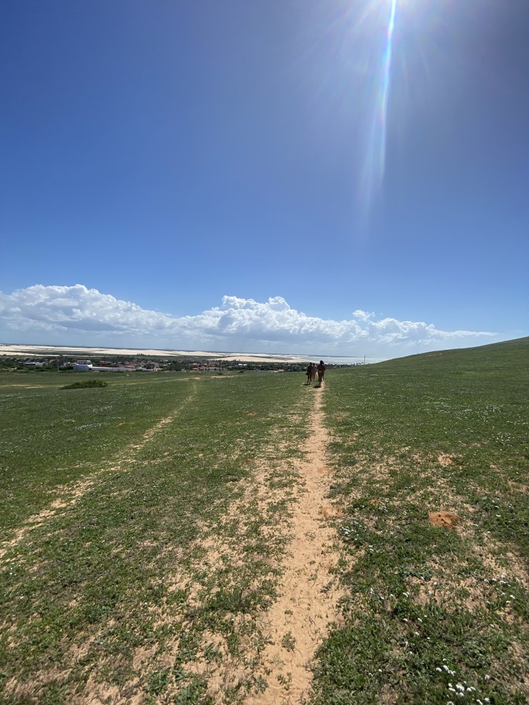 Do aero até a vila, são dois jeitos de chegar: pelas dunas e pela praia. Fomos pelas dunas. Ahh, uma coisa muito importante para se fazer é pagar a taxa de turismo logo no aero, para evitar fila lá na entrada da vila. Com o novo ajuste (fevereiro, 2023) o valor da taxa será R$ 41,50 por visitante e utilização de até dez dias.